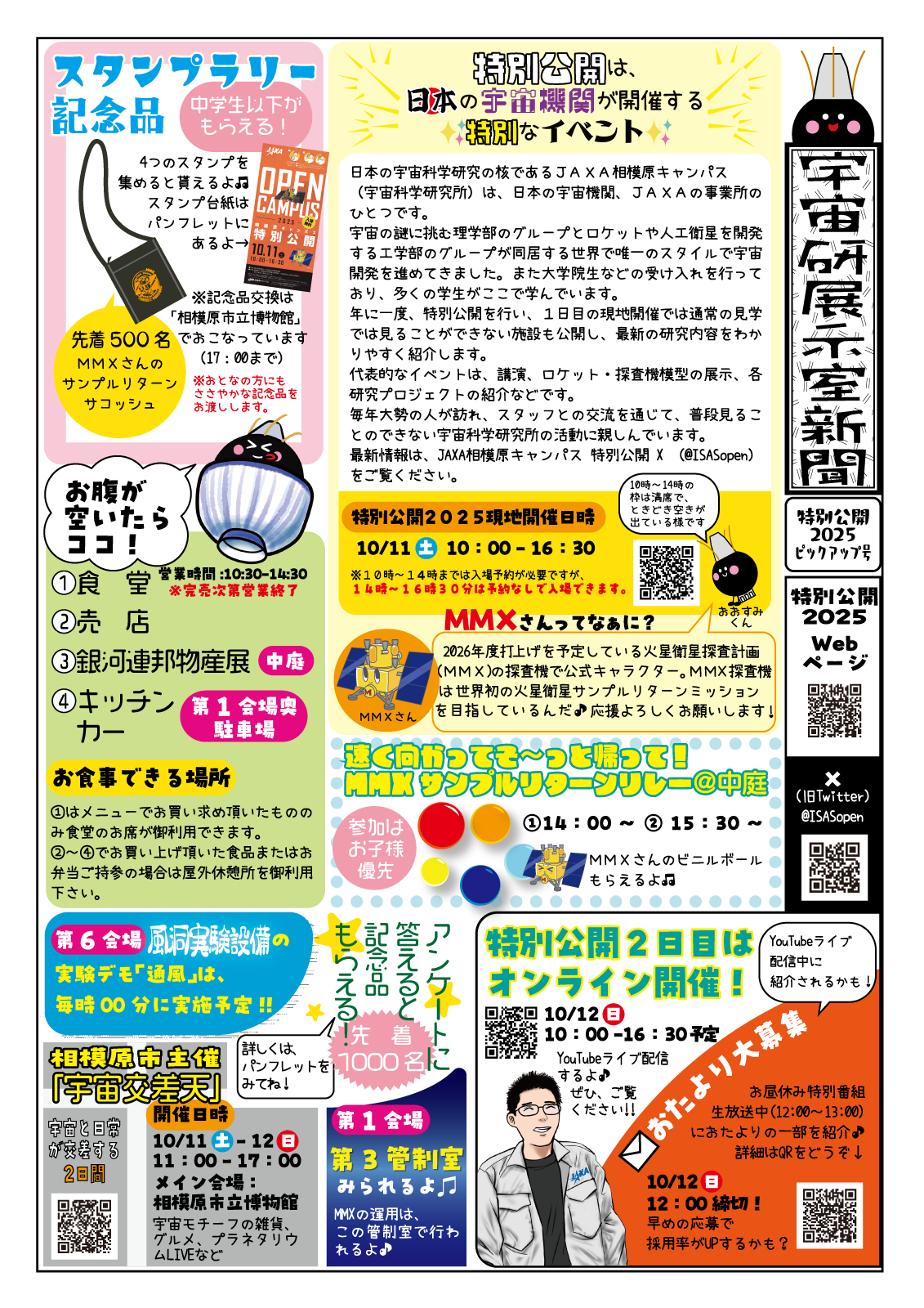 宇宙研展示室新聞 特別公開2025 ピックアップ号 JAXA相模原キャンパス特別公開 2025X(旧Twitter) @ISASopen (2025/10/09) ダウンロード1131 x 1600 [600 KB]